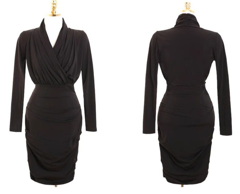 レディース ワンピース ドレス 膝上 長袖 Vネック カシュクール タイト スリム 細身 ドレープ フェミニン ウエストマーク ハイウエスト ギャザー かわいい 大人可愛い きれいめ シンプル カジュアル 上品 おしゃれ こなれ感 エレガント フォーマル 抜け感 ラグジュアリー セクシー 無地 春 秋 結婚式 二次会 披露宴 発表会 授業参観 オフィス OL 通勤 デート お出かけ パーティー イベント レストラン ホテル 美脚 普段使い 着回し モテ 清楚 S M L XL 黒 ブラック 紫 パープル