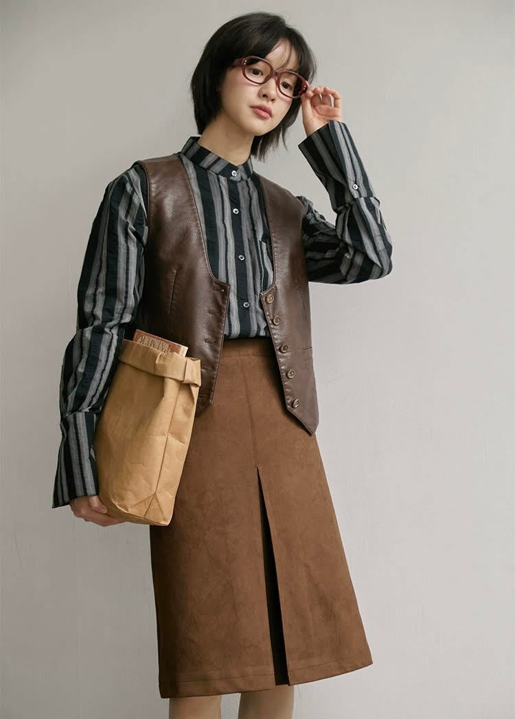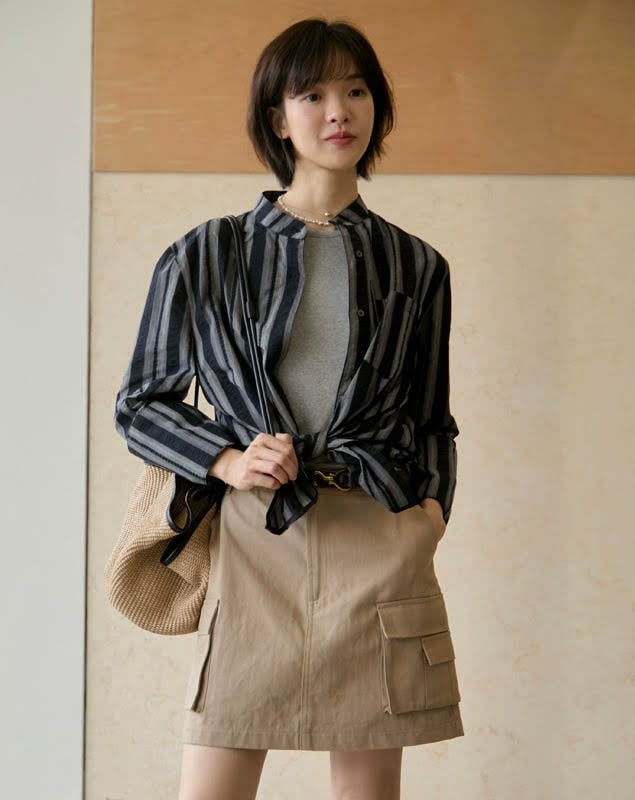 ストライプ柄が秋のお出かけやデート、アウトドアシーンにもぴったりです。