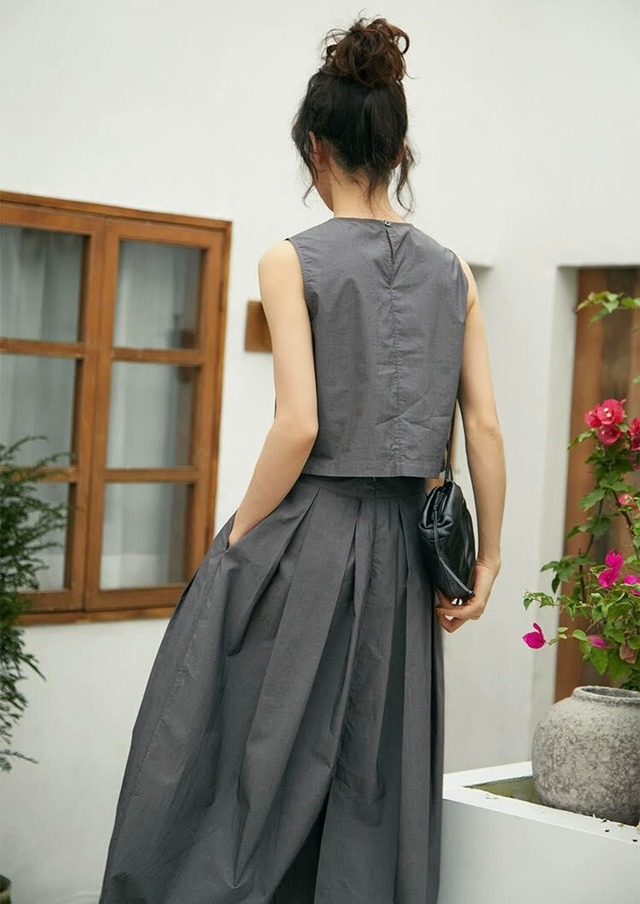 レディース トップス プルオーバー ベスト ショート ノースリーブ ラウンドネック スリム 細身 かわいい 大人可愛い きれいめ シンプル カジュアル 上品 おしゃれ かっこいい レトロ こなれ感 ラフ クール モード系 モダン 主役級 存在感 抜け感 都会的 クラシカル ベーシック ナチュラル 無地 夏 デート お出かけ お泊まり アウトドア 旅行 女子会 休日 ショッピング 重ね着 韓国 オルチャン コーデ 普段使い 着回し モテ 清楚 トレンド 流行 インスタ映え 定番 M L グレー