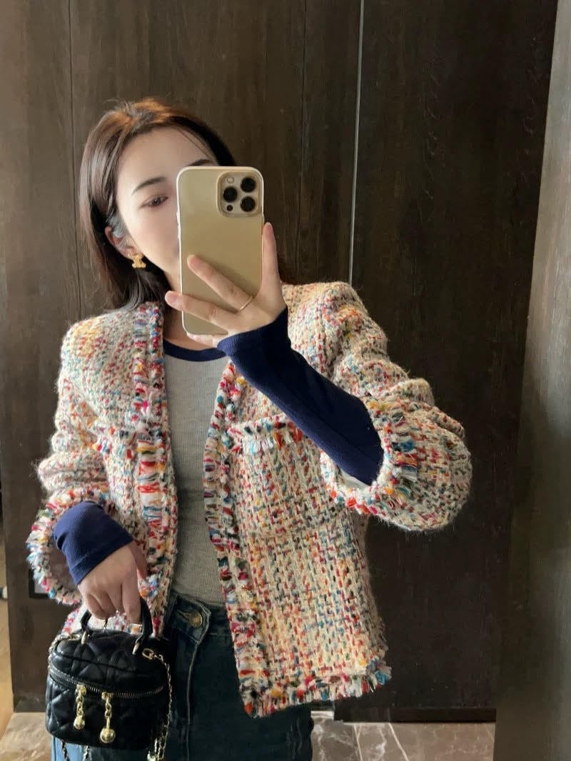 レディース ジャケット アウター ショート 長袖 Vネック 襟なし スリム 細身 前開き フリンジ かわいい 大人可愛い きれいめ カジュアル 上品 おしゃれ かっこいい レトロ アジアン エスニック エキゾチック こなれ感 ラフ クール モード系 モダン 主役級 存在感 抜け感 秋 冬 デート お出かけ お泊まり 旅行 レストラン 女子会 休日 ショッピング 韓国 オルチャン コーデ 暖かい 普段使い モテ トレンド 流行 インスタ映え 定番 S M L