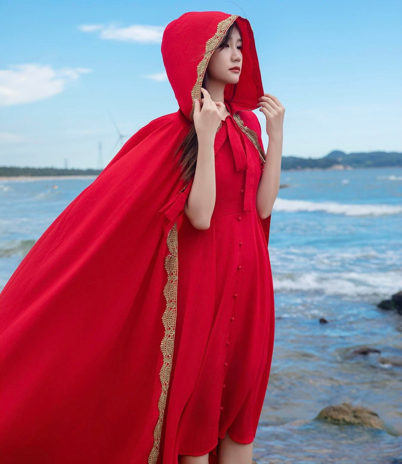 レディース アウター 羽織 ポンチョ フード付き ロング 袖なし リボン 前開き かわいい 大人可愛い きれいめ カジュアル 上品 おしゃれ かっこいい レトロ アジアン エスニック エキゾチック こなれ感 ラフ 個性的 クール モード系 エレガント モダン 主役級 存在感 抜け感 秋 デート お出かけ お泊まり 旅行 レストラン 女子会 休日 ショッピング 韓国 オルチャン コーデ 楽ちん 体型カバー 普段使い モテ トレンド 流行 インスタ映え ゆったり ゆる フリーサイズ レッド