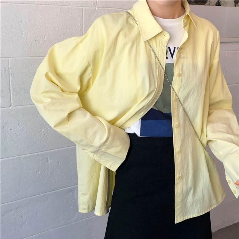 レディース トップス シャツ 長袖 襟付き 前開き ボタン 薄手 かわいい 大人可愛い きれいめ シンプル カジュアル 上品 おしゃれ かっこいい レトロ こなれ感 ラフ クール モード系 モダン 主役級 存在感 抜け感 ベーシック 無地 春 秋 デート お出かけ お泊まり 旅行 レストラン 女子会 休日 ショッピング 韓国 オルチャン コーデ 楽ちん 普段使い 着回し モテ 清楚 トレンド 流行 インスタ映え 定番 フリーサイズ ホワイト イエロー ピンク オレンジ ブルー グリーン パープル