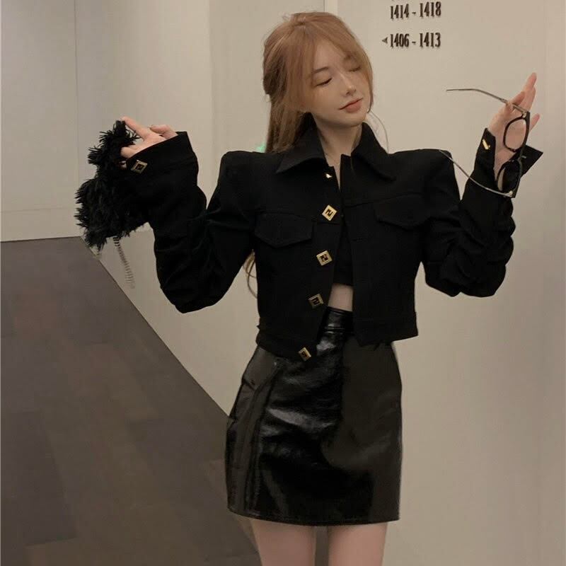 レディース ジャケット アウター 上着 ショート 長袖 襟付き スリム 細身 前開き ボタン かわいい 大人可愛い きれいめ シンプル カジュアル 上品 おしゃれ かっこいい レトロ こなれ感 クール モード系 エレガント モダン 主役級 存在感 フォーマル 無地 秋 オフィス ビジネス OL 通勤 デート お出かけ お泊まり イベント 旅行 レストラン 女子会 休日 ホテル ショッピング 韓国 オルチャン コーデ 普段使い 着回し モテ トレンド 流行 インスタ映え 定番 フリーサイズ 黒 ブラック