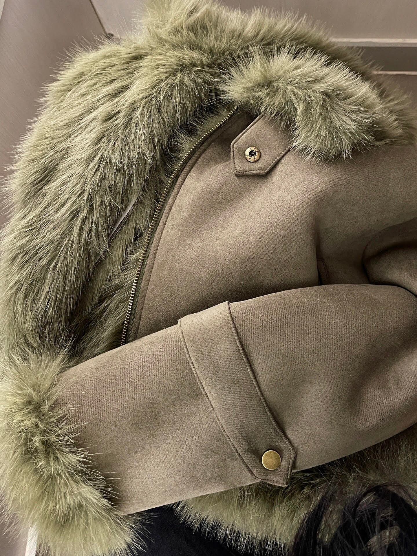 大人可愛い印象を与えるふわふわで暖かいショート丈コートです。