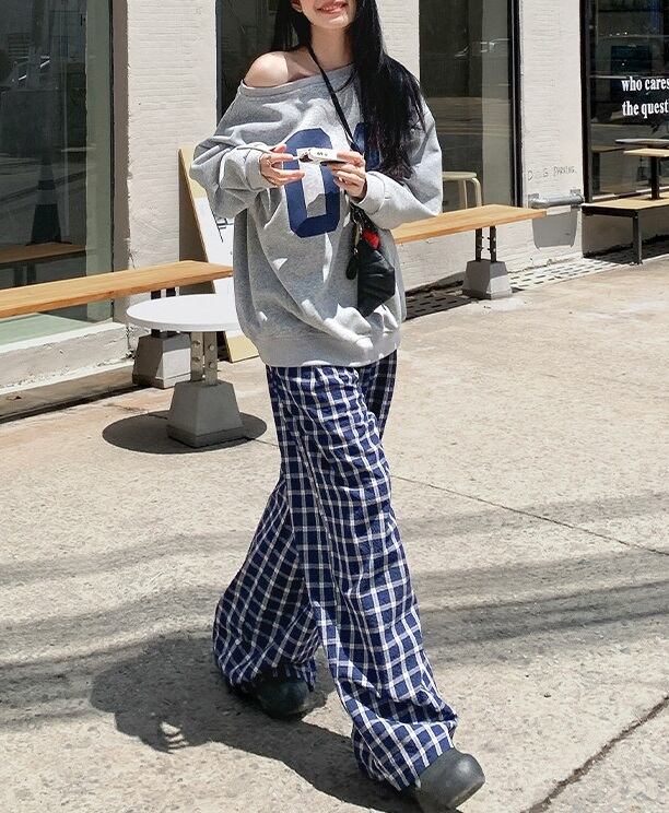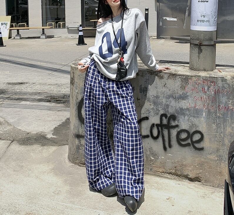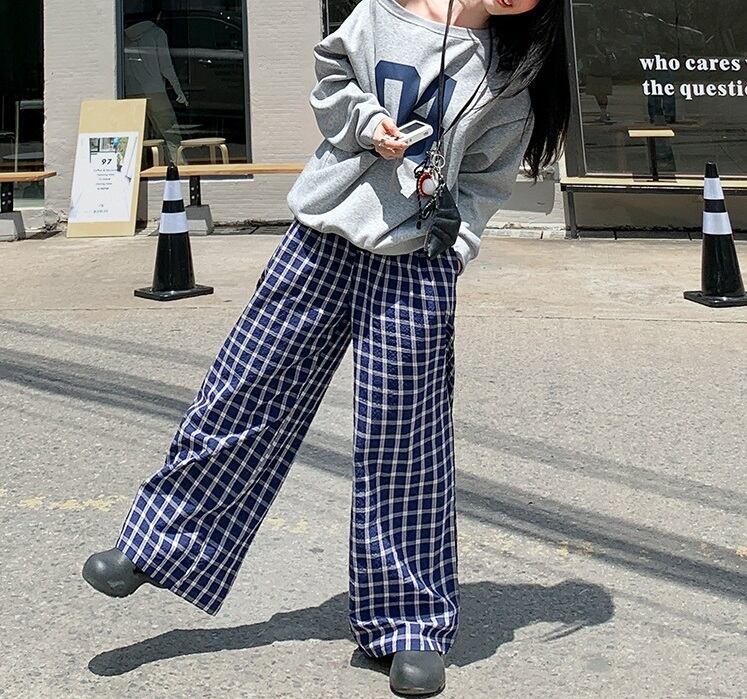 チェック柄 ハイウエスト ワイドパンツ レディース パンツ ボトムス ロングパンツ ロング ワイド ポケット ハイウエスト ボタン かわいい 大人可愛い カジュアル おしゃれ レトロ こなれ感 ボーイッシュ ルーズ 個性的 主役級 存在感 チェック 格子柄 春 夏 秋 冬 ママ 通勤 学生 学校 通学 デート お出かけ 旅行 公園 女子会 休日 ショッピング カフェ 体型カバー 脚長 普段使い 着回し XS S M L XL 小さいサイズ ゆったり ネイビー チェック柄