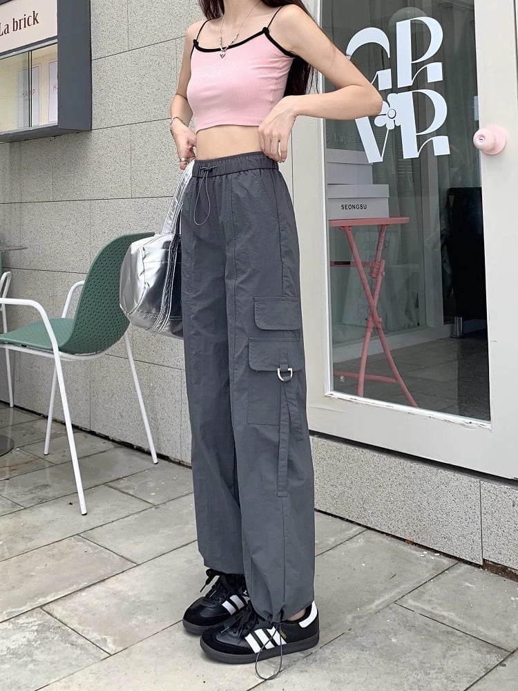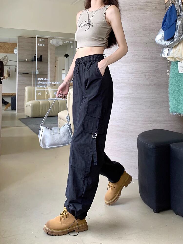 ウエストゴム ワイド カーゴパンツ レディース パンツ ボトムス ロングパンツ ワイドパンツ ロング ストレート ストリート ポケット ハイウエスト ドロスト 伸縮性 裾絞り かわいい 大人可愛い シンプル カジュアル おしゃれ かっこいい メンズライク ボーイッシュ ルーズ 無地 春 夏 秋 冬 ママ 通勤 学生 学校 通学 デート お出かけ 旅行 公園 女子会 休日 脚長 普段使い 着回し S M L XL 2XL 大きいサイズ ゆったり 黒 ブラック 紫 ダークグレー パープル カーキグリーン