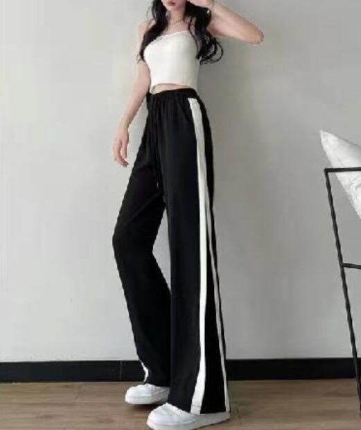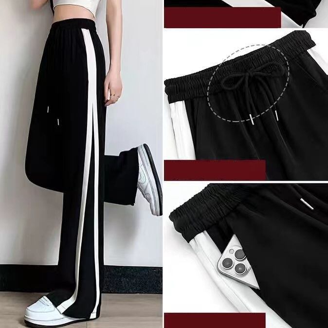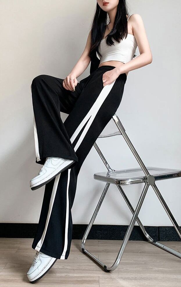 太め サイドライン ウエストゴム ワイドパンツ ジャージ レディース パンツ ボトムス ルームウェア 部屋着 ロングパンツ フレアパンツ ロング ワイド フレア ブーツカット ポケット ハイウエスト ドロスト バイカラー 配色 かわいい 大人可愛い シンプル カジュアル おしゃれ かっこいい スポーティー ルーズ 春 夏 秋 冬 ママ 学生 学校 通学 部活 デート お出かけ お泊まり 旅行 休日 楽ちん 体型カバー 脚長 普段使い 着回し S M L XL 2XL 3XL 大きいサイズ 黒白 黒灰