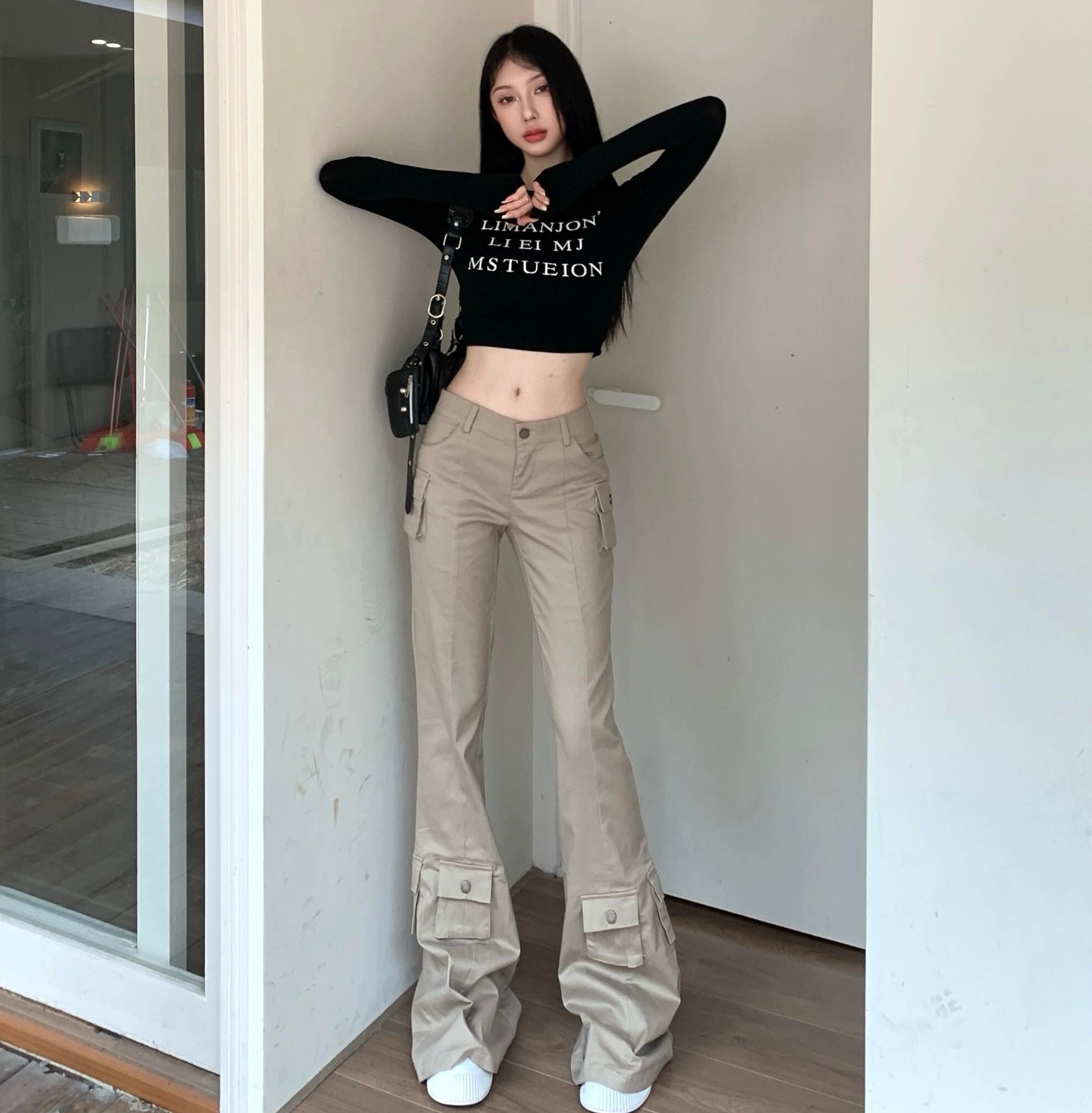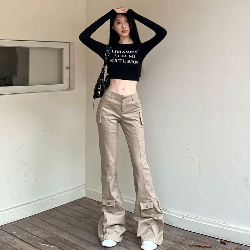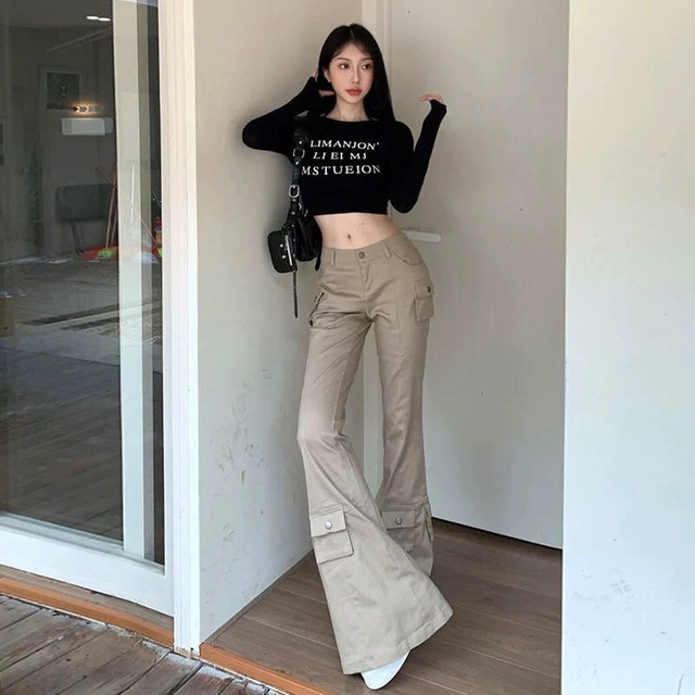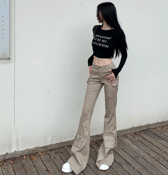 2セット セットアップ レディース トップス パンツ ボトムス プルオーバー Tシャツ ショート 長袖 ラウンドネック スリム 細身 ストレート 裾ワイド へそ出し ポケット ハイウエスト 大人可愛い きれいめ シンプル カジュアル 上品 おしゃれ かっこいい レトロ こなれ感 ラフ クール モード系 モダン 主役級 存在感 ロゴ 秋 デート お出かけ お泊まり 女子会 休日 韓国 オルチャン コーデ 美脚 脚長 普段使い 着回し モテ トレンド 流行 インスタ映え 定番 S M L ブラック ベージュ