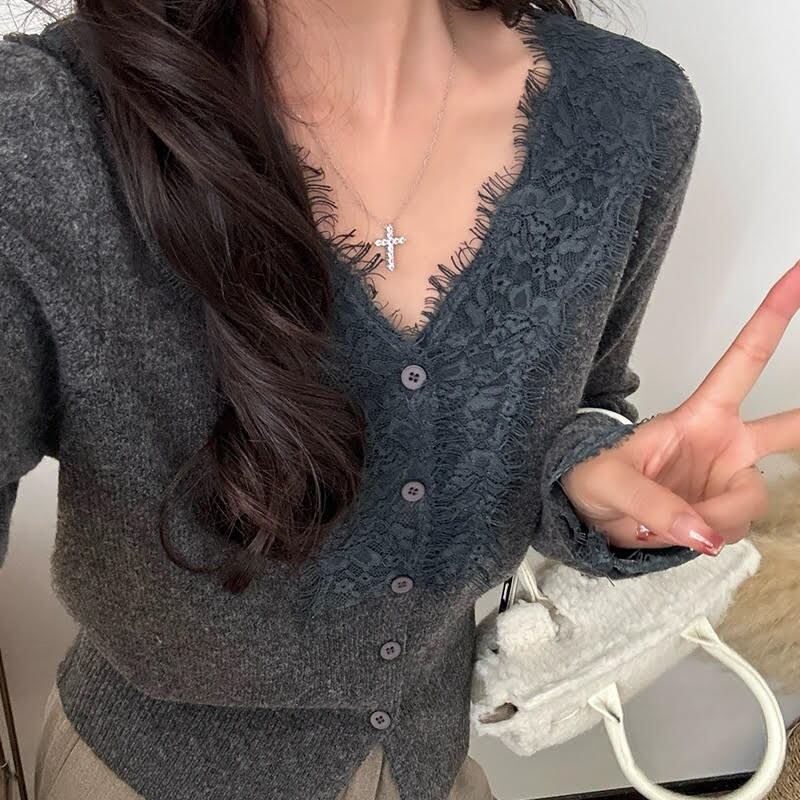 レディース トップス ニット カーディガン 長袖 Vネック スリム 細身 レース 前開き 透け感 ボタン かわいい 大人可愛い きれいめ シンプル カジュアル 上品 おしゃれ かっこいい レトロ こなれ感 ラフ ガーリー 主役級 存在感 抜け感 ラブリー キュート ナチュラル 無地 秋 冬 デート お出かけ お泊まり 旅行 女子会 休日 重ね着 お揃い 双子 韓国 オルチャン コーデ 普段使い モテ 清楚 トレンド 流行 インスタ映え 定番 S M L ホワイト ブラック ブラウン グレー ライトブルー