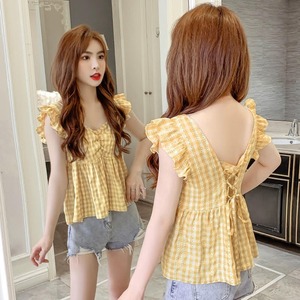 レディース トップス カットソー プルオーバー 袖なし ノースリーブ Vネック 襟なし スリム 細身 フリル 薄手 後ろ編み上げ バックコンシャス かわいい 大人可愛い きれいめ シンプル カジュアル 上品 おしゃれ レトロ こなれ感 ガーリー 抜け感 ラブリー キュート ナチュラル チェック 格子柄 夏 デート お出かけ お泊まり 旅行 海 ビーチ 女子会 休日 ショッピング 韓国 オルチャン コーデ 普段使い モテ トレンド 流行 インスタ映え 定番 S M L XL イエロー レッド グリーン