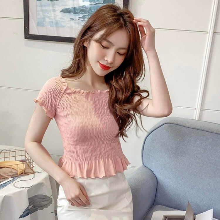 レディース トップス カットソー プルオーバー ショート 半袖 スクエアネック オフショルダー スリム 細身 フェミニン シャーリング フリル かわいい 大人可愛い きれいめ シンプル カジュアル 上品 おしゃれ かっこいい レトロ こなれ感 主役級 存在感 抜け感 ラブリー キュート ナチュラル 無地 夏 デート お出かけ お泊まり アウトドア リゾート 旅行 リゾート 女子会 休日 ショッピング 韓国 オルチャン コーデ 普段使い モテ 清楚 インスタ映え 定番 S M L XL 2XL ピンク