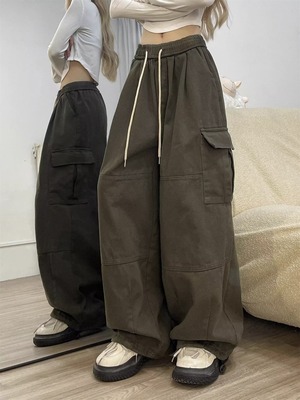 ウエストゴム ワイド カーゴパンツ レディース パンツ ボトムス ロングパンツ ワイドパンツ ロング ワイド ポケット ハイウエスト ドロスト かわいい 大人可愛い シンプル カジュアル おしゃれ かっこいい メンズライク ボーイッシュ ルーズ 無地 春 夏 秋 冬 ママ 通勤 学生 学校 通学 デート お出かけ 旅行 公園 休日 楽ちん 体型カバー 脚長 普段使い 着回し S M L XL 2XL 3XL 4XL 5XL 大きいサイズ ゆったり 黒 ブラック ピンク ブルー レッド 緑 グリーン