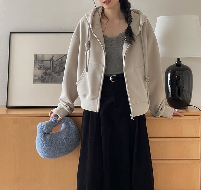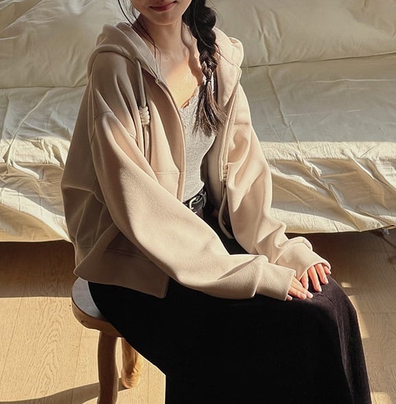 フード付きジップアップパーカーは、カジュアルでおしゃれな女性のための必須アイテム。柔らかな素材感と、ゆったりしたシルエットが体型をカバーし、どんなスタイルでも着こなせます。フロントには便利なポケットが付いており、育児中のママや学生の通学、デイリーユースにもぴったりです。このシンプルでかわいいパーカーは、春・秋・冬の季節を問わず重ね着にも最適!カフェや公園でのお出かけにも大活躍です。