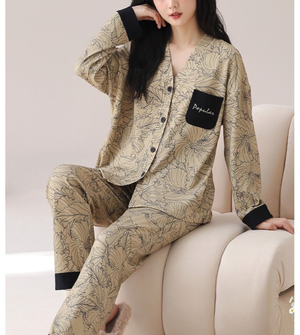 2セット セットアップ レディース パンツ ルームウェア パジャマ シャツ 部屋着 ストレートパンツ 長袖 Vネック ポケット 前開き ウエストゴム 伸縮性 ボタン バイカラー かわいい 大人可愛い きれいめ シンプル カジュアル 上品 おしゃれ かっこいい レトロ こなれ感 ラフ ルーズ クール モード系 モダン 存在感 ナチュラル プリント 春 秋 お泊まり アウトドア キャンプ 旅行 休日 韓国 オルチャン コーデ 楽ちん 普段使い モテ トレンド 流行 定番 M L XL 2XL 3XL ベージュ