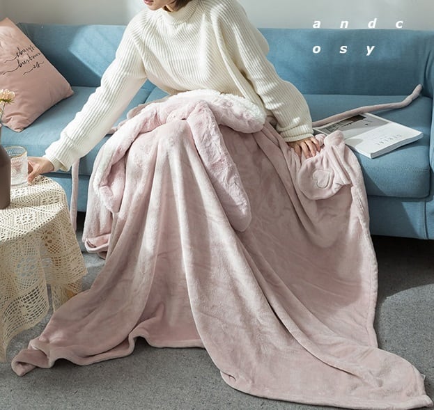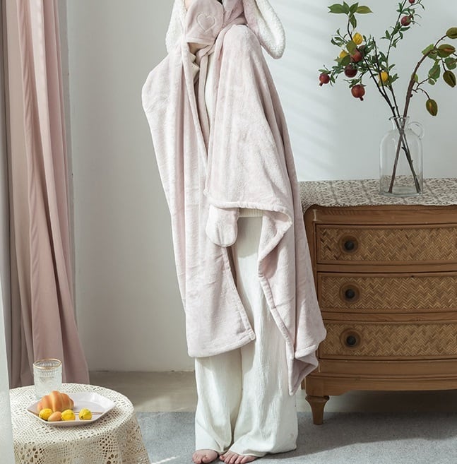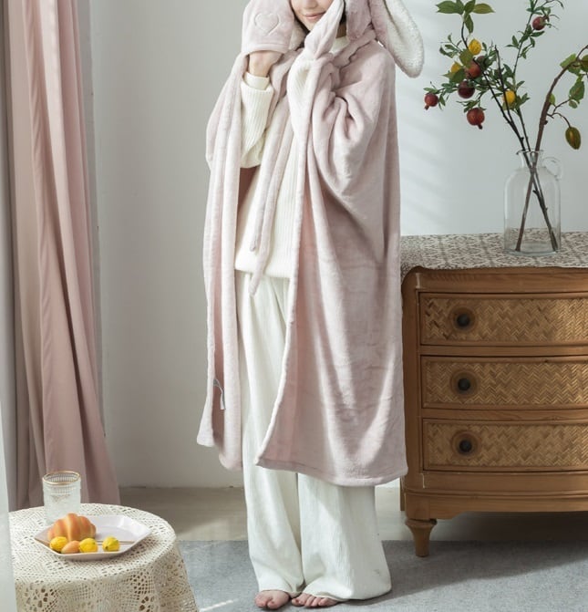 「ふわふわ うさ耳 フード付き 着る毛布」は、寒い季節にぴったりな暖かさと可愛さを兼ね備えたアイテムです!お部屋でのリラックスタイムや、お泊まり、旅行に最適なルームウェア。もこもこの素材とキュートなうさ耳デザインが、あなたの普段使いを楽しく彩ります。前開き仕様で着脱も簡単、ポケット付きで実用性もバッチリ!春、秋、冬でも暖かく、体型カバー効果も嬉しいポイントです。友達や家族との休日のお出かけにもぴったり!