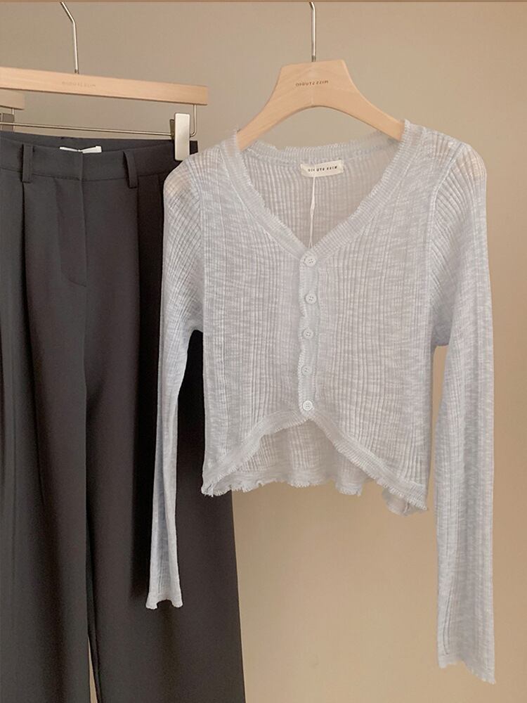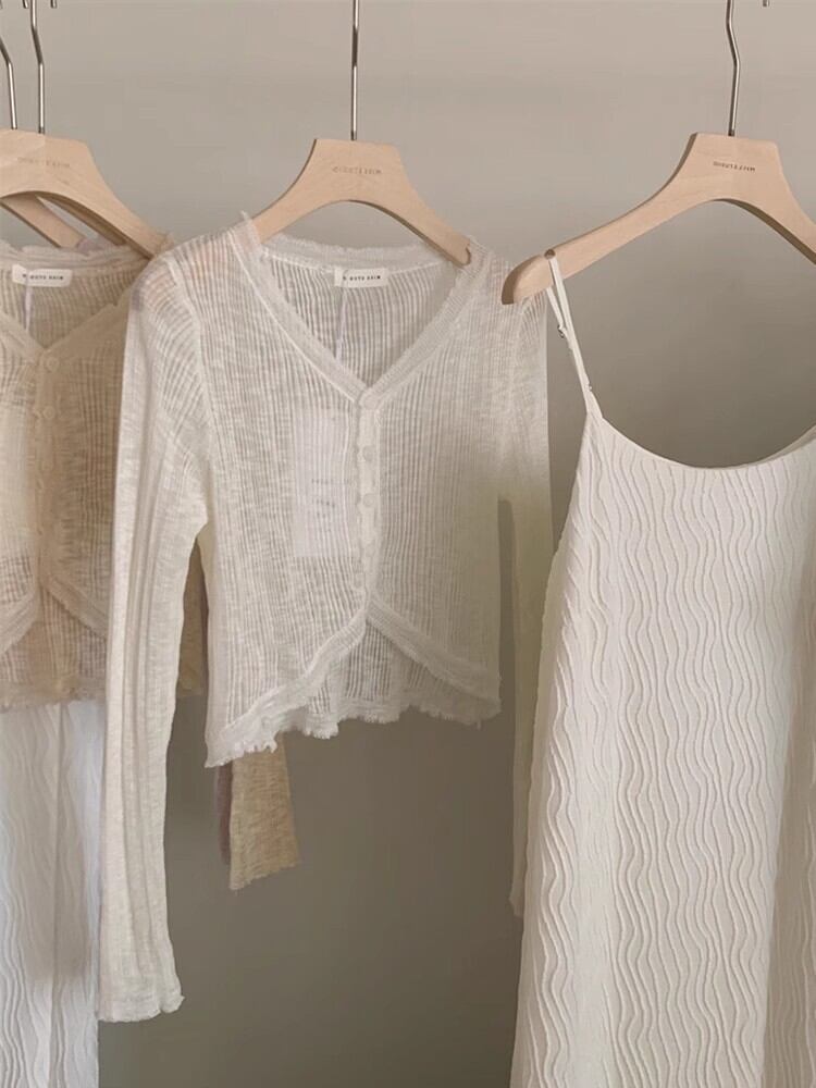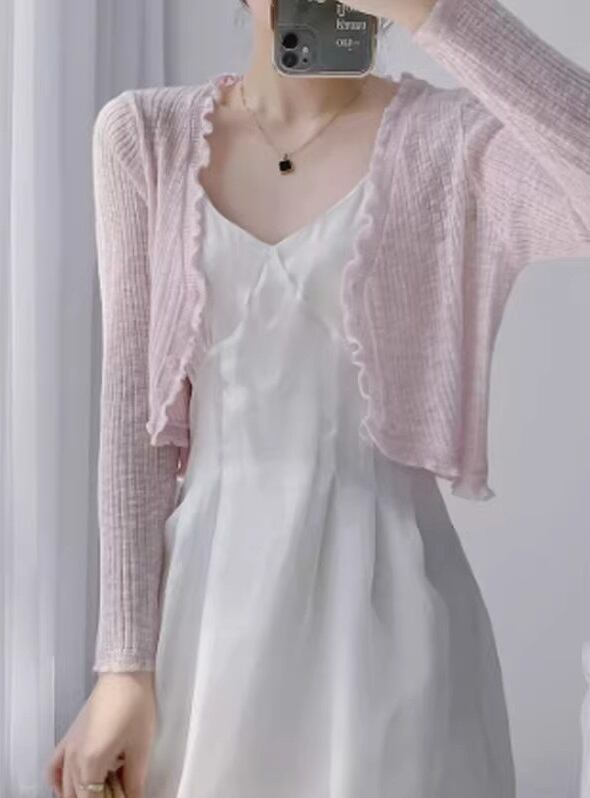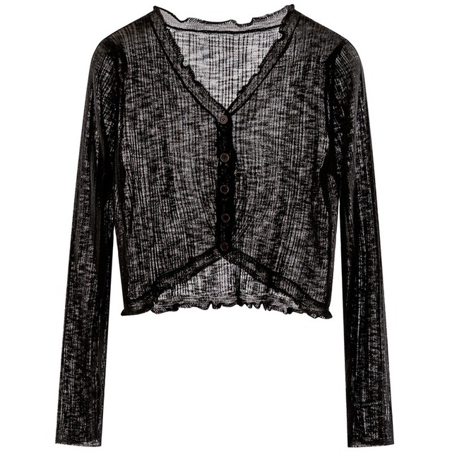 ショート丈 透かし編み メロウ ニットカーディガン レディース トップス ニット カーディガン 上着 ショート 長袖 Vネック フェミニン リブ 前開き 透け感 シースルー メロウフリル シアー かぎ針編み リブニット かわいい 大人可愛い きれいめ シンプル カジュアル おしゃれ ガーリー 無地 春 夏 秋 ママ 通勤 学生 学校 通学 デート お出かけ 旅行 公園 女子会 休日 重ね着 普段使い 着回し 紫外線対策 フリーサイズ 白 ホワイト 黒 ブラック ピンク アプリコット ライトブルー 抹茶