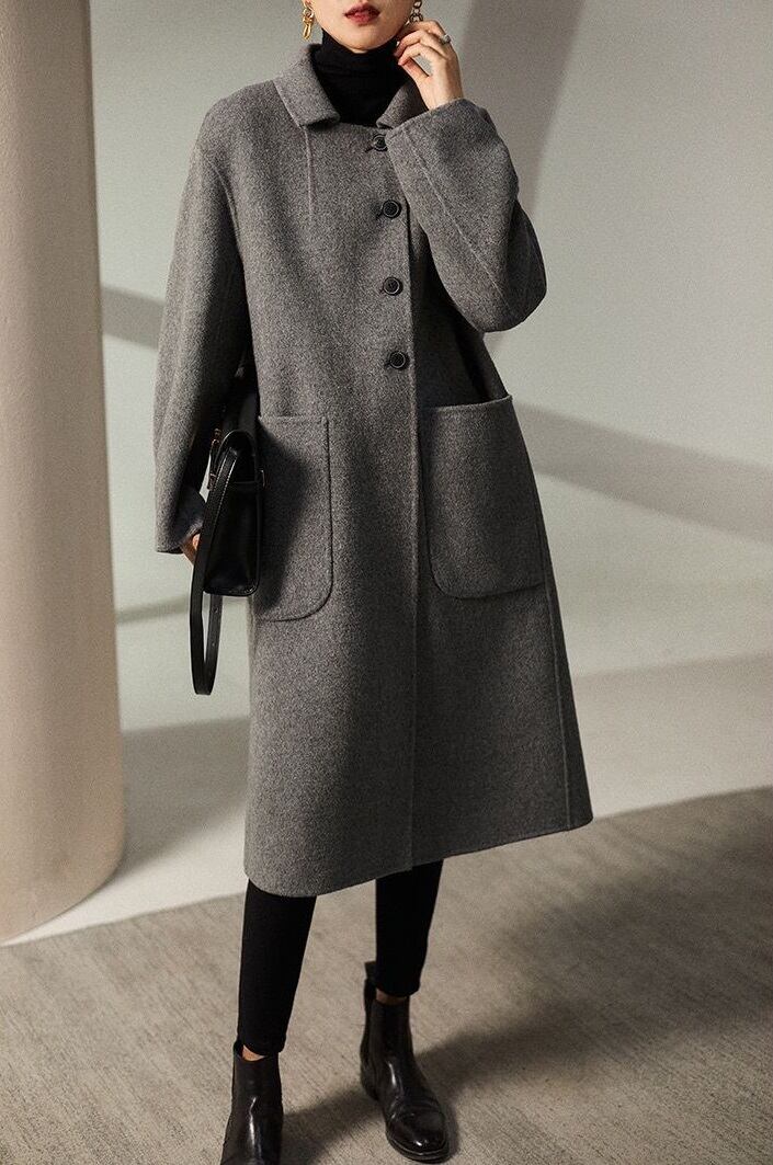 このロング丈の長袖ウールコートは、シンプルながらも品のあるスタイルを演出する必見のアイテムです!襟付きの角襟デザインと前開きのボタン仕様が、都会的でエレガントな雰囲気を醸し出し、カジュアルなコーディネートにもぴったり。暖かさを保ちつつ体型カバーも叶える優れものです。春秋冬のシーズンに対応でき、通勤、デート、お出かけ、旅行など、幅広いシーンで活躍します!