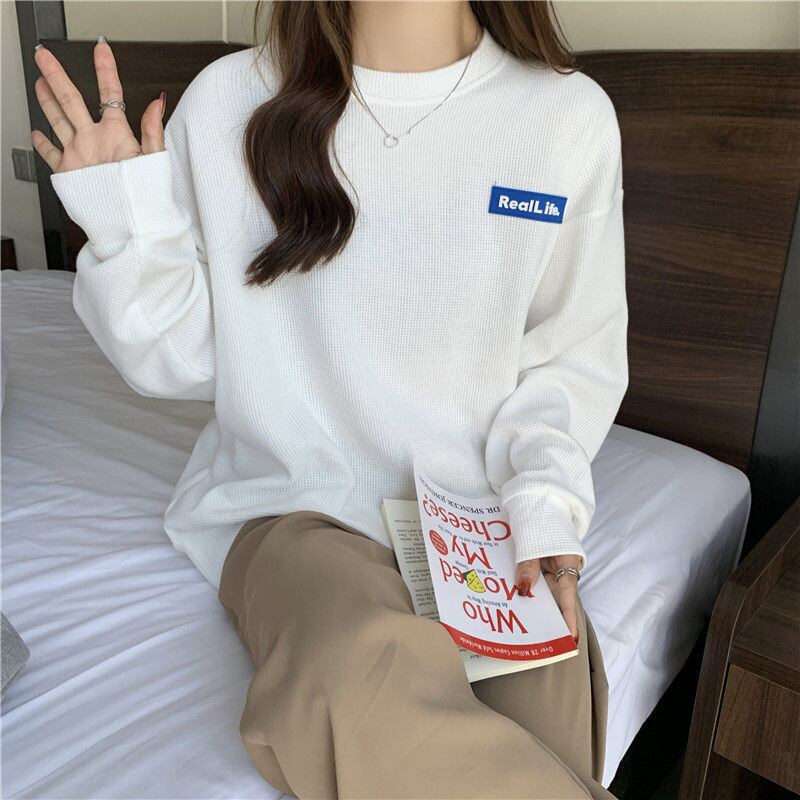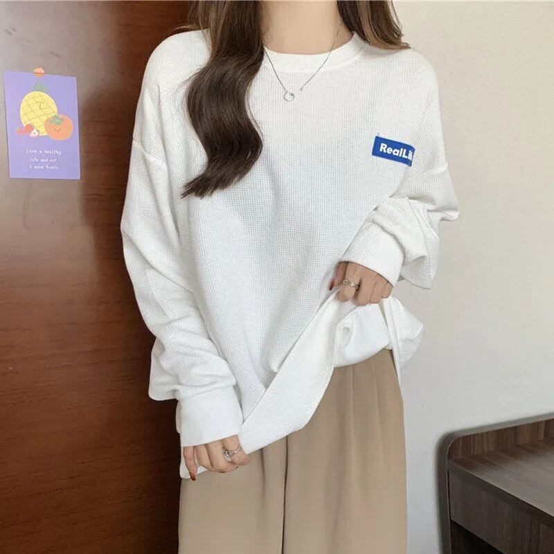英字 ロゴ ワッフル トレーナー レディース トップス プルオーバー トレーナー 丈長 ミディアム 長袖 ドロップショルダー ラウンドネック 襟なし ワッフル かわいい 大人可愛い シンプル カジュアル おしゃれ こなれ感 ルーズ ロゴ 春 秋 冬 ママ 通勤 学生 学校 通学 デート お出かけ 旅行 公園 女子会 休日 ショッピング カフェ 重ね着 暖かい 体型カバー 普段使い 着回し レイヤード S M L XL 2XL 3XL ゆったり 白 ホワイト 黒 ブラック グレー