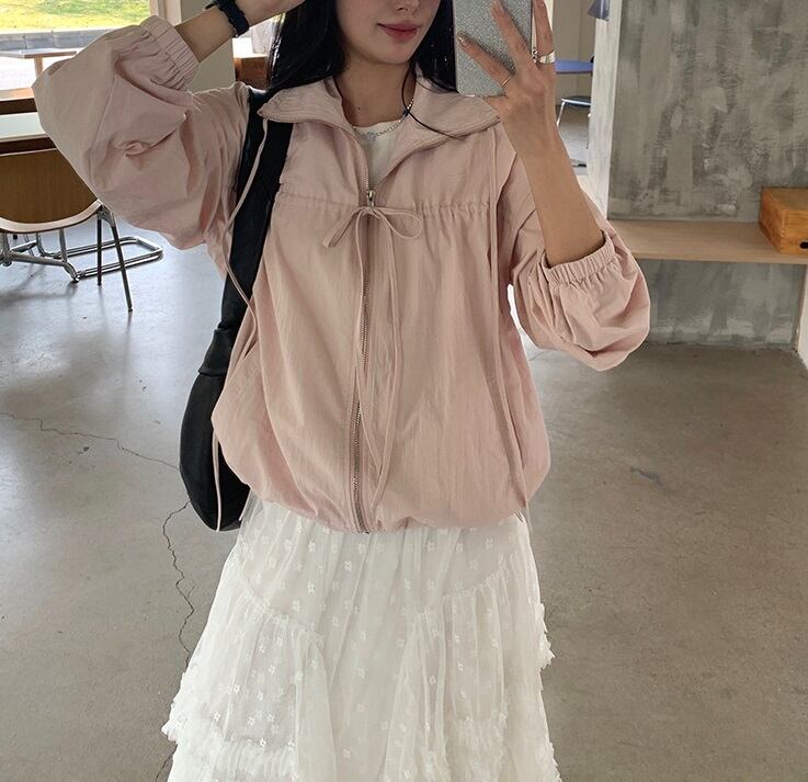 このフロントリボン結び 襟付き ジップアップ ジャケットは、コーディネートの幅を広げるおしゃれなアイテムです!ドロップショルダーのデザインが特徴で、ゆったりとしたシルエットが体型カバーを実現。シンプルながらもリボン結びが施されたフロントデザインは、大人可愛い印象を与え、普段使いやデート、お出かけにぴったりです。また、ポケット付きで実用性も兼ね備えています。