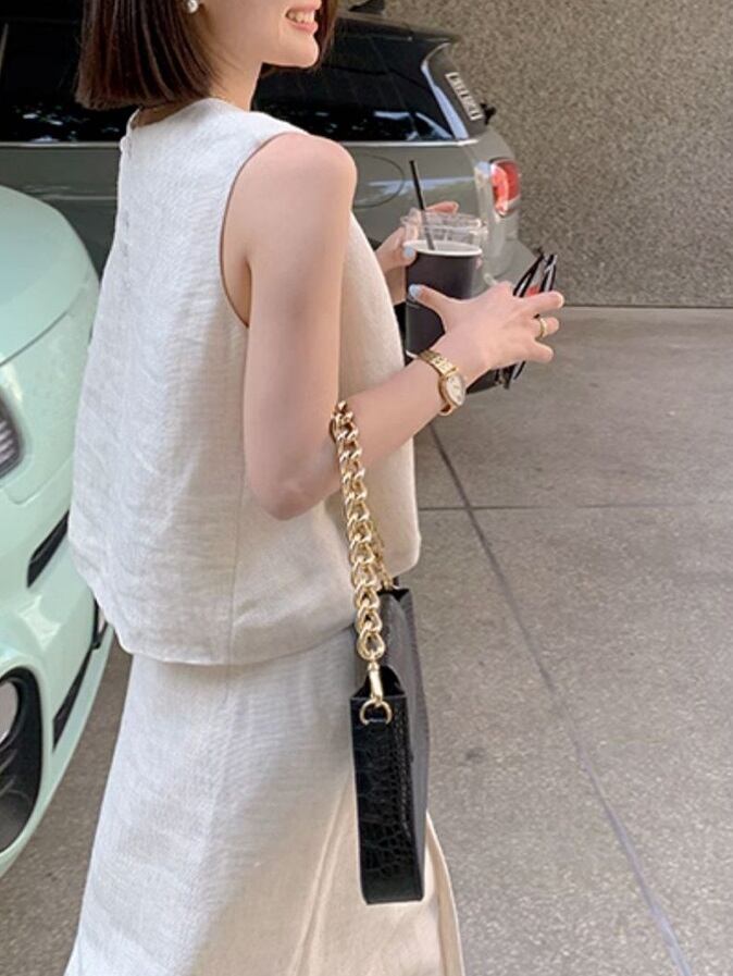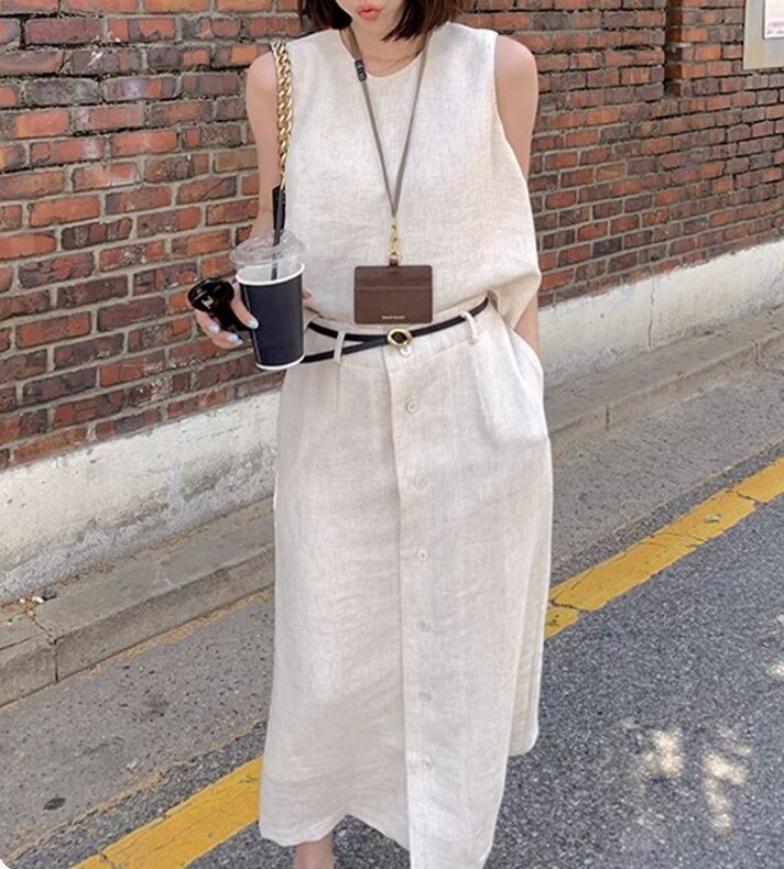 大人可愛いあなたにおすすめの「綿 リネン セットアップ ノースリーブ トップス ロングスカート 2点セット」のご案内です!