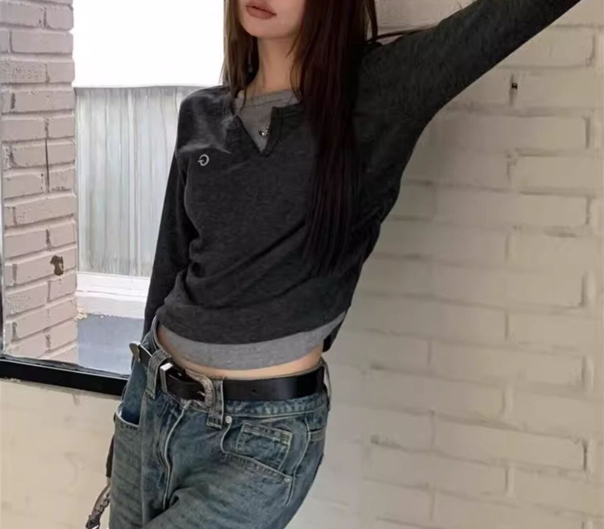 こちらのロンTは、シンプルでありながらおしゃれなキーネックデザインが特徴で、襟なしのスッキリとしたシルエットは、普段使いやデート、通勤シーンまで幅広く活躍します。ゆったりとしたサイズ感はリラックスした着心地を提供し、体型カバーも叶えてくれる優れもの。重ね着したレイヤードスタイルにもぴったりで、シーズンを問わずお楽しみいただけます。