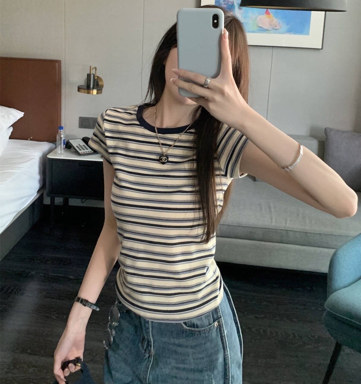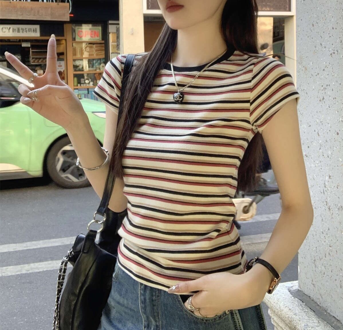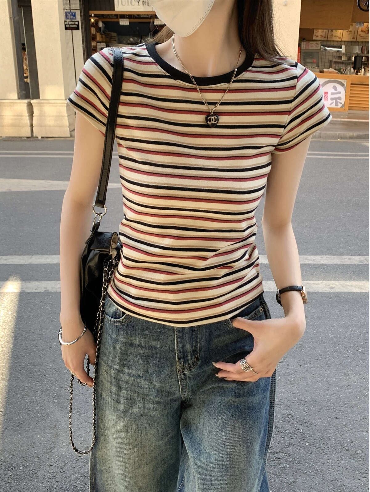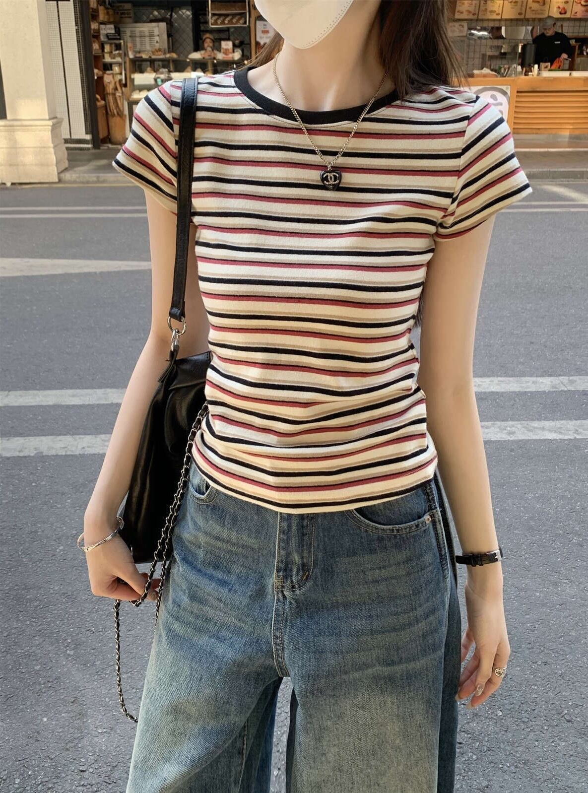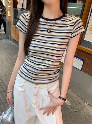 大人可愛いコーディネートにぴったり!「ボーダー柄 ラウンドネック 半袖 Tシャツ」のご案内です!