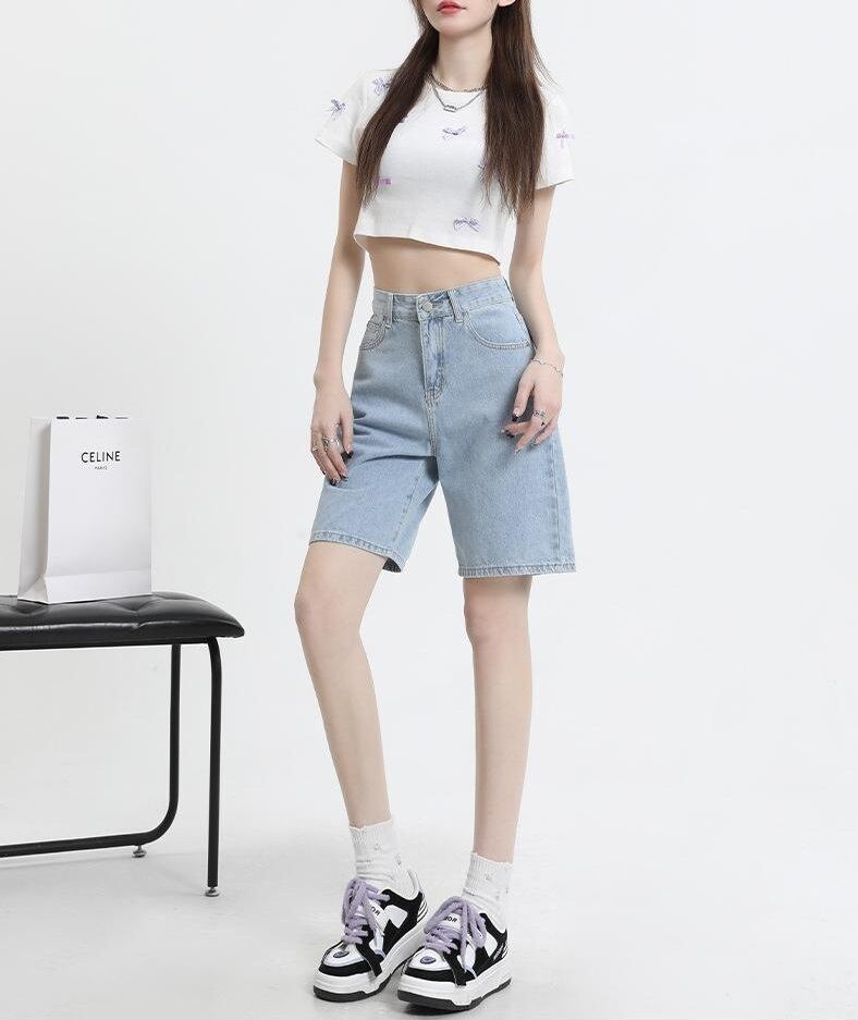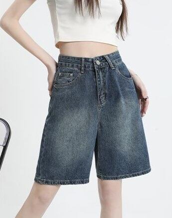 ワイド デニム ハーフパンツ レディース パンツ ボトムス ショーパン Gパン デニムパンツ 膝上 ハーフ ワイド ファスナー ポケット ハイウエスト ヴィンテージ ウォッシュ デニム ブルーデニム かわいい 大人可愛い シンプル カジュアル おしゃれ レトロ ボーイッシュ ルーズ 無地 春 夏 秋 ママ 通勤 学生 学校 通学 デート お出かけ 旅行 公園 女子会 休日 脚長 普段使い 着回し 定番 XS S M L XL 2XL 小さいサイズ 大きいサイズ ゆったり 水色 ライトブルー レトロブルー