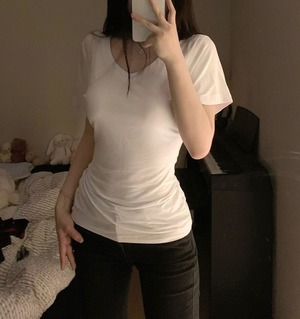 大人可愛い必見!2タイプの Vネック Uネック ショート丈 Tシャツ レディースのご案内です!