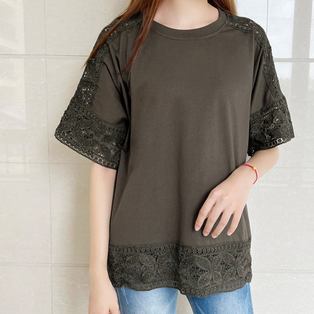大人可愛い必見!2タイプの「花柄 刺繍レース 五分袖 Tシャツ」のご案内です!