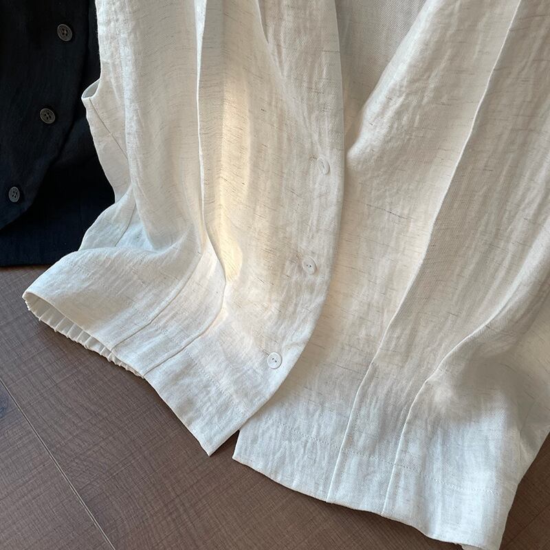 綿 リネン フレンチスリーブ Vネック シャツ レディース トップス ミディアム 袖なし ノースリーブ フレンチスリーブ Vネック 襟なし ノーカラー 前開き ボタン コットン 麻 かわいい 大人可愛い きれいめ シンプル カジュアル おしゃれ こなれ感 ルーズ ナチュラル 無地 春 夏 秋 ママ 学生 学校 通学 デート お出かけ 旅行 公園 女子会 休日 ショッピング カフェ 体型カバー 普段使い 着回し M L ゆったり 白 ホワイト 黒 ブラック