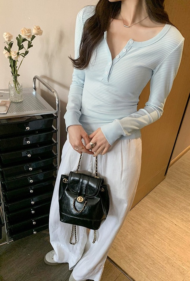 このボーダー柄のハーフボタンラウンドネックロンTは、シンプルながらもおしゃれなデザインが魅力の一着です。襟なしのラウンドネックと、スリムなシルエットが体型をすっきり見せ、プルオーバーとしても使いやすいアイテムです。デイリーのカジュアルスタイルはもちろん、通勤やデート、女子会など、さまざまなシーンで着回しが効くこと間違いなしです!さらには、春や秋の気温の変化に対応できる長袖仕様が嬉しいポイントです。