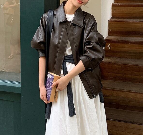 このオーバーサイズの長袖レザージャケットは、メンズライクなデザインとゆったりとしたシルエットが魅力です。角襟とファスナー付きの前開きスタイルがカジュアルながらもおしゃれさを引き立て、体型カバーにも優れた一着となっています。暖かく、春・秋・冬の3シーズンにわたって活躍できる万能アイテムです!通勤や学校、休日のお出かけやデート、公園での女子会など、幅広いシーンでの着回し力が抜群です。無地のデザインは重ね着にも最適で、カジュアルにもかっこいいコーディネートにもマッチします。