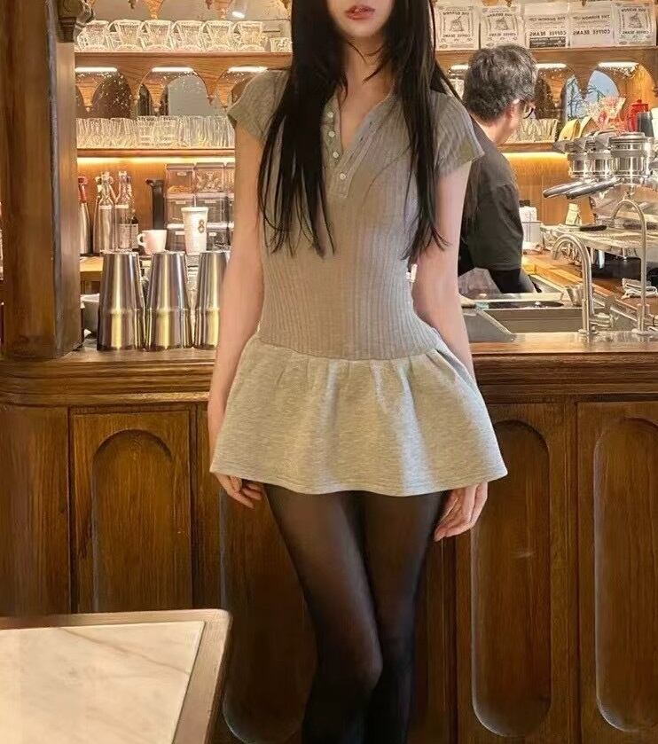 異素材MIX ドッキング ミニワンピース レディース ワンピース サマーワンピ フレア ミニ 膝上 半袖 Vネック 襟付き ポロカラー ハーフボタン スリム Aライン 切り替え ハイウエスト リブ リブニット ボタン 異素材ミックス ニット かわいい 大人可愛い きれいめ シンプル カジュアル おしゃれ こなれ感 ガーリー キュート 無地 春 夏 秋 ママ 通勤 学生 学校 通学 デート お出かけ 旅行 公園 女子会 休日 ショッピング カフェ 脚長 普段使い 着回し S M L 白 ホワイト グレー