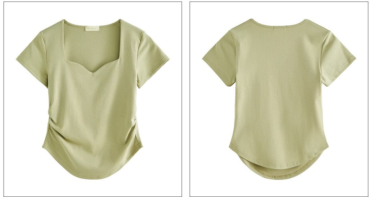 スクエアネック 半袖 スリム Tシャツ レディース トップス カットソー プルオーバー インナー ミディアム 半袖 Vネック スクエアネック 襟なし 細身 ギャザー ウエスト細見え かわいい 大人可愛い きれいめ シンプル カジュアル 上品 おしゃれ こなれ感 エレガント ベーシック 無地 春 夏 秋 ママ 通勤 学生 学校 通学 デート お出かけ 旅行 公園 女子会 休日 ショッピング カフェ S M L XL 2XL 白 ホワイト ダークグレー ライトモスグリーン クリーミーホワイト