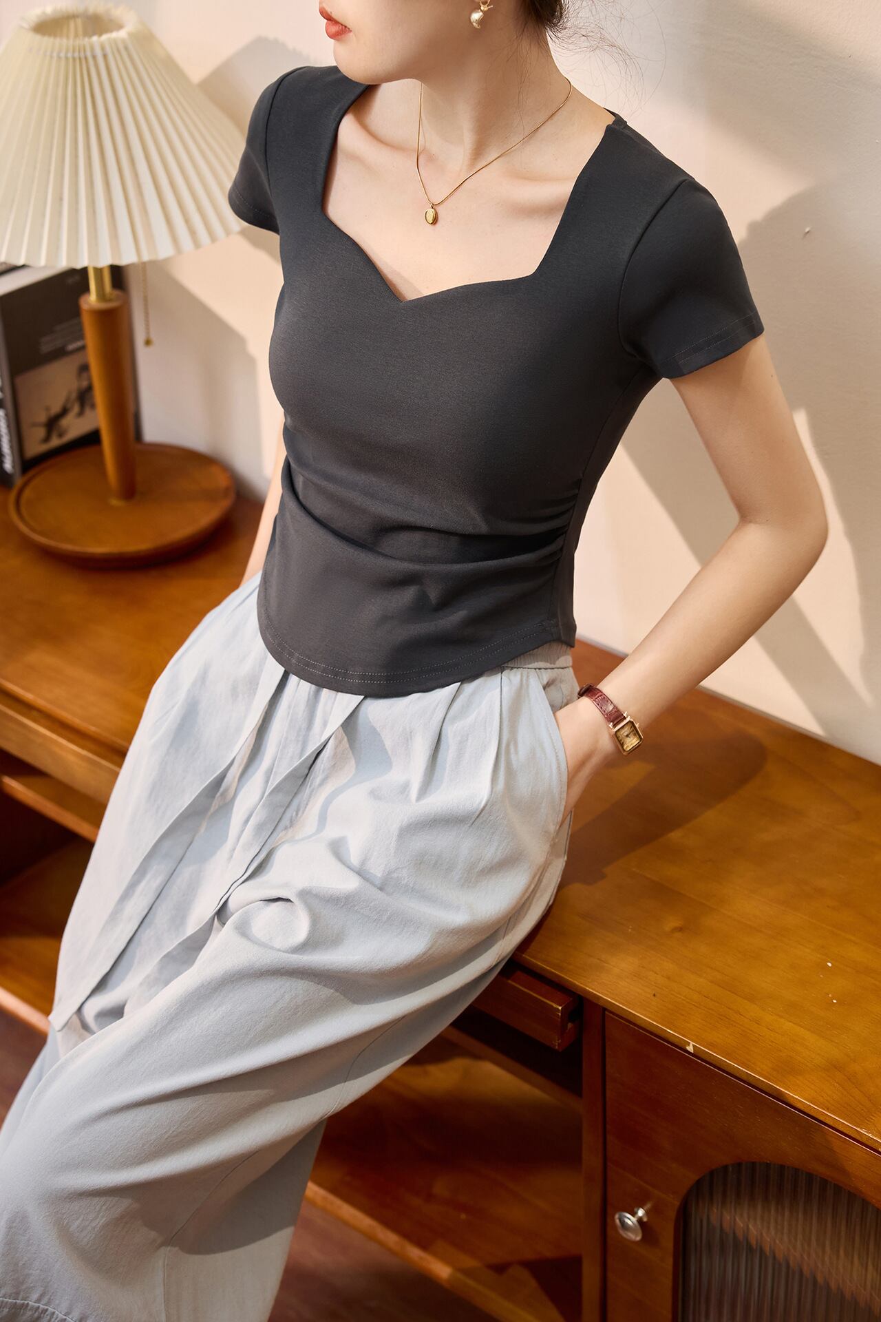 大人可愛い必見!「スクエアネック 半袖 スリム Tシャツ」のご案内です!