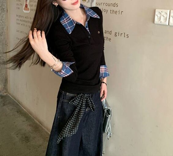 このチェック柄の長袖ポロシャツは、華やかなバイカラー配色が特徴的な一着です。角襟デザインとハーフボタンが、カジュアルでありながらもおしゃれな雰囲気を演出します。スリムなシルエットは体型を美しく見せ、春、秋、冬のさまざまなシーンにピッタリです。通勤や通学、デート、お出かけなど、幅広いシチュエーションで活躍すること間違いなし!こなれたスタイルで大人可愛いコーディネートを楽しんでください。