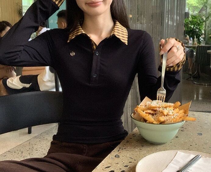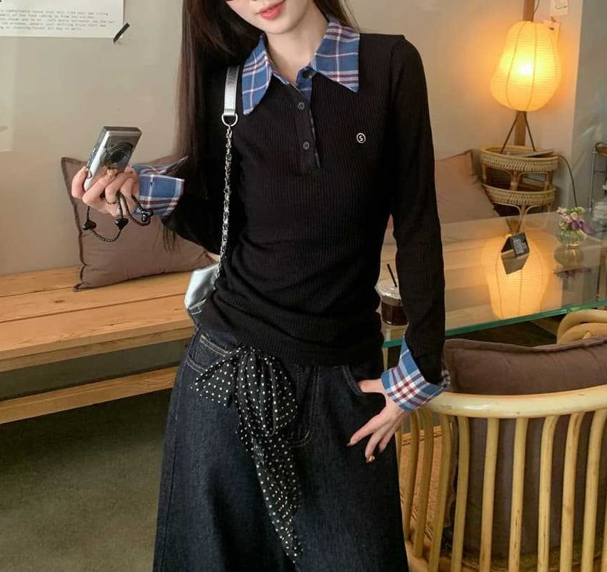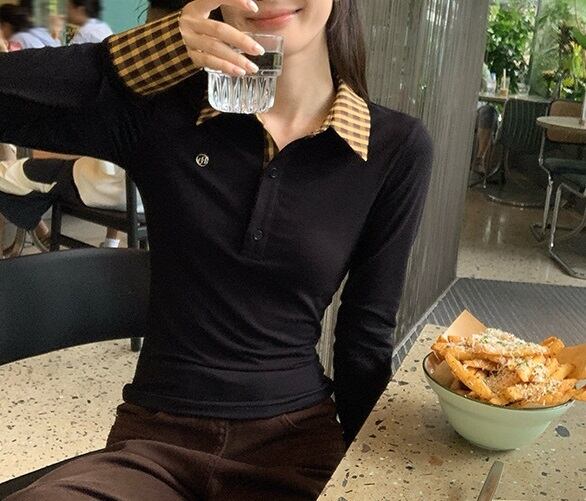 大人可愛い必見!「チェック柄 配色 長袖 ポロシャツ」のご案内です!
