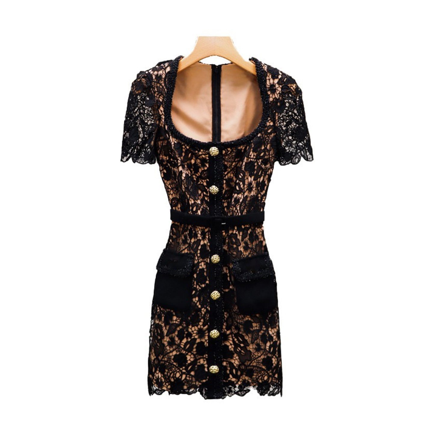 花柄レース スクエアネック ミニワンピース レディース ワンピース ドレス サマーワンピ ミニ 膝上 半袖 襟なし スリム 細身 Aライン 切り替え レース ポケット ハイウエスト ボタン ゴールドボタン かわいい 大人可愛い きれいめ カジュアル 上品 おしゃれ エレガント 主役級 セクシー 花柄 フラワー 春 夏 秋 発表会 ママ 通勤 学生 学校 通学 デート お出かけ 旅行 公園 女子会 休日 ショッピング キャバ キャバクラ 体型カバー 脚長 普段使い 着回し S M L 黒 ブラック