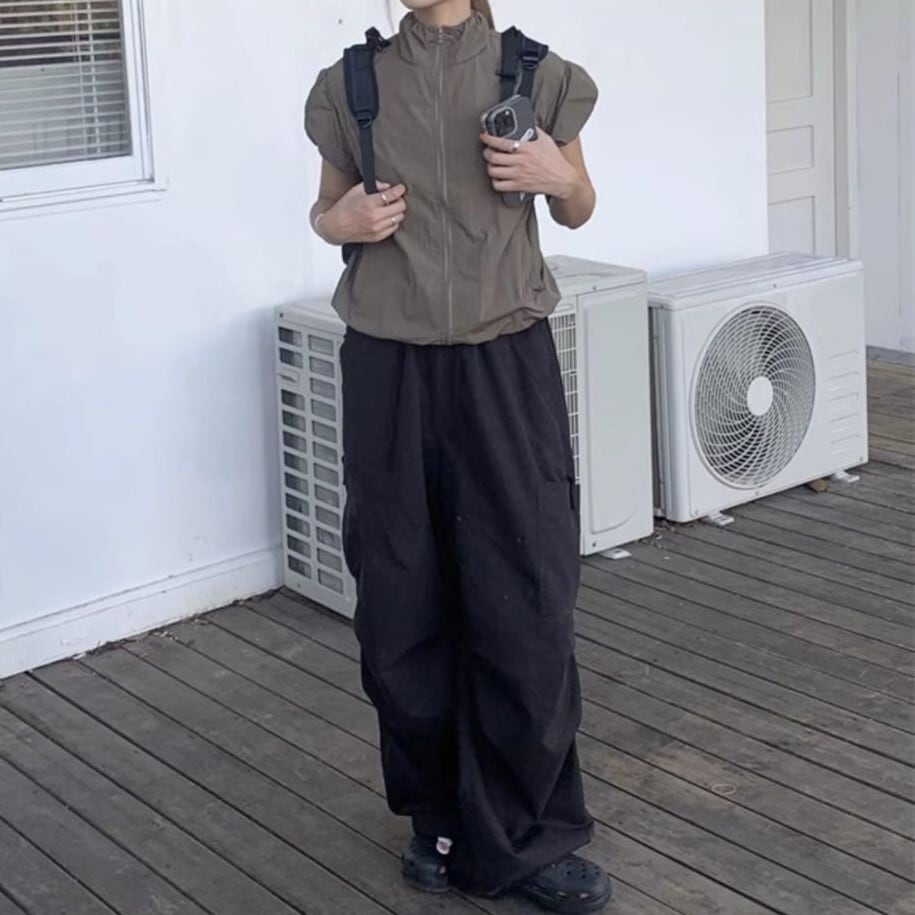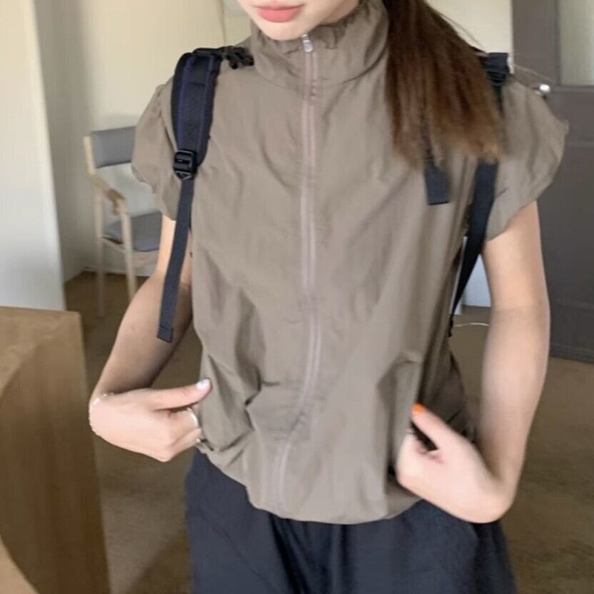 スタンドカラー 半袖 ジップアップ ジャケット レディース トップス 羽織 ミディアム 半袖 パフスリーブ 襟付き スタンドカラー 半ハイネック ファスナー ジップアップ ジッパー チャック かわいい 大人可愛い シンプル カジュアル おしゃれ かっこいい メンズライク ボーイッシュ 無地 春 夏 秋 ママ 通勤 学生 学校 通学 デート お出かけ 旅行 公園 女子会 休日 重ね着 体型カバー 普段使い 着回し レイヤード S M L XL 2XL 大きいサイズ ゆったり 黒 ブラック ダークブラウン