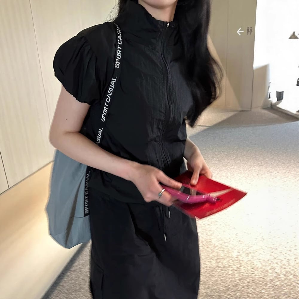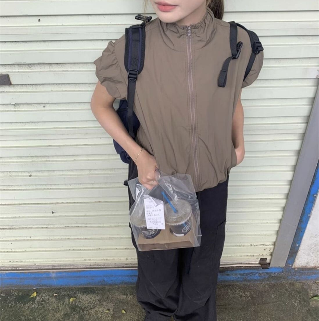 このジャケットは春、夏、秋にぴったりなアイテムです。スタンドカラーとジップアップデザインが、シンプルながらもおしゃれな雰囲気を漂わせ、通勤や学校、デート、お出かけなど、さまざまなシーンで活躍すること間違いなしです!半袖のパフスリーブが可愛らしさをプラスし、体型をさりげなくカバーしながら、ルーズな着心地でリラックス感も演出します。