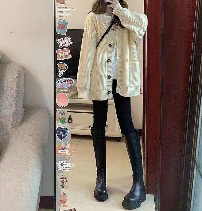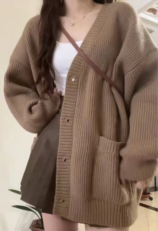 このカーディガンは、春、秋、冬にぴったりのアイテムで、通勤や通学、デート、お出かけ、旅行など、さまざまなシーンで大活躍します。大きめのポケットとリブニットデザインが特徴で、シンプルながらもおしゃれな雰囲気を引き立てます。Vネックの襟なしデザインは、こなれ感を演出し、オーバーサイズのシルエットがリラックスした着心地を提供します。無地カラー(ホワイト、ブラック、グレー、カーキ、ワインレッド、コーヒーブラウン、アーミーグリーン)は、どんなコーディネートにも合わせやすく、重ね着スタイルでも楽しむことができます。普段使いから特別な日まで、幅広いスタイルに対応できる一着です!