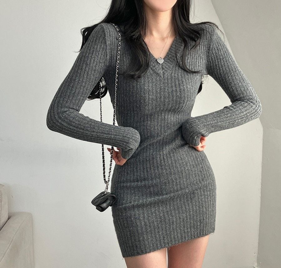 Vネック スリム リブニット ミニワンピース レディース ワンピース ニット ニットワンピ ミニ 膝上 長袖 襟なし スリム 細身 Aライン リブ リブニット 伸縮性 かわいい 大人可愛い きれいめ シンプル カジュアル 上品 おしゃれ こなれ感 セクシー 無地 春 秋 冬 ママ 通勤 学生 学校 通学 デート お出かけ 旅行 公園 女子会 休日 ショッピング カフェ 暖かい 脚長 普段使い 着回し S M L XL 黒 ブラック グレー アプリコット