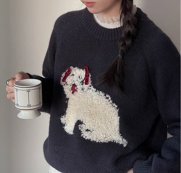 大人可愛いを演出する「ふわふわ 犬柄 長袖 ニットセーター」のご案内です!