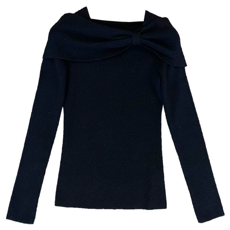 アシメ リボン ケープ風 長袖 ニットセーター レディース トップス ニット セーター プルオーバー インナー ミディアム 長袖 ラウンドネック ボートネック 襟なし ケープ襟 スリム 細身 アシンメトリー フェミニン リボン 伸縮性 リボン結び かわいい 大人可愛い きれいめ シンプル カジュアル おしゃれ ガーリー キュート 無地 春 秋 冬 ママ 通勤 学生 学校 通学 デート お出かけ 旅行 公園 女子会 休日 ショッピング カフェ 普段使い 着回し S M L XL 白 ホワイト 黒 ブラック