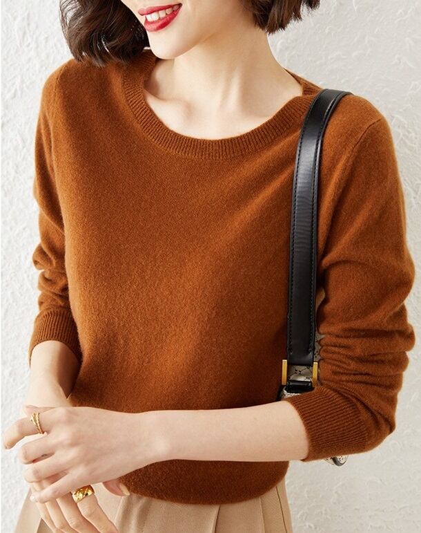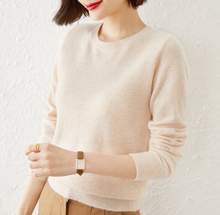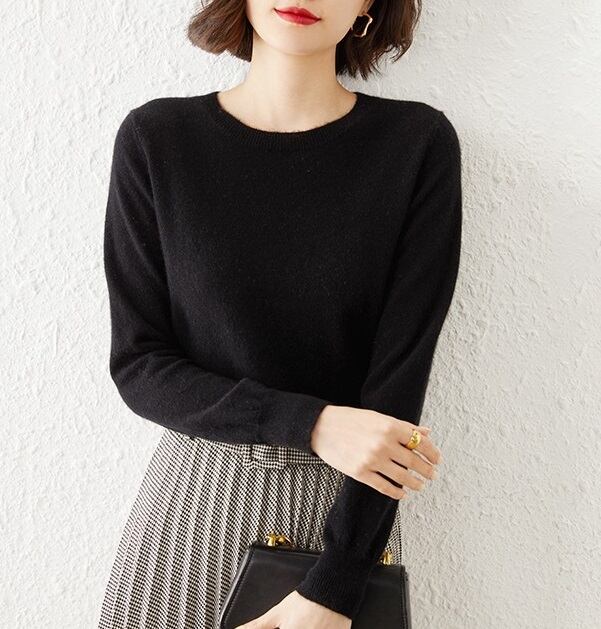 大人可愛いスタイルを演出する「ベーシック ラウンドネック 長袖 ニットセーター」のご案内です!
