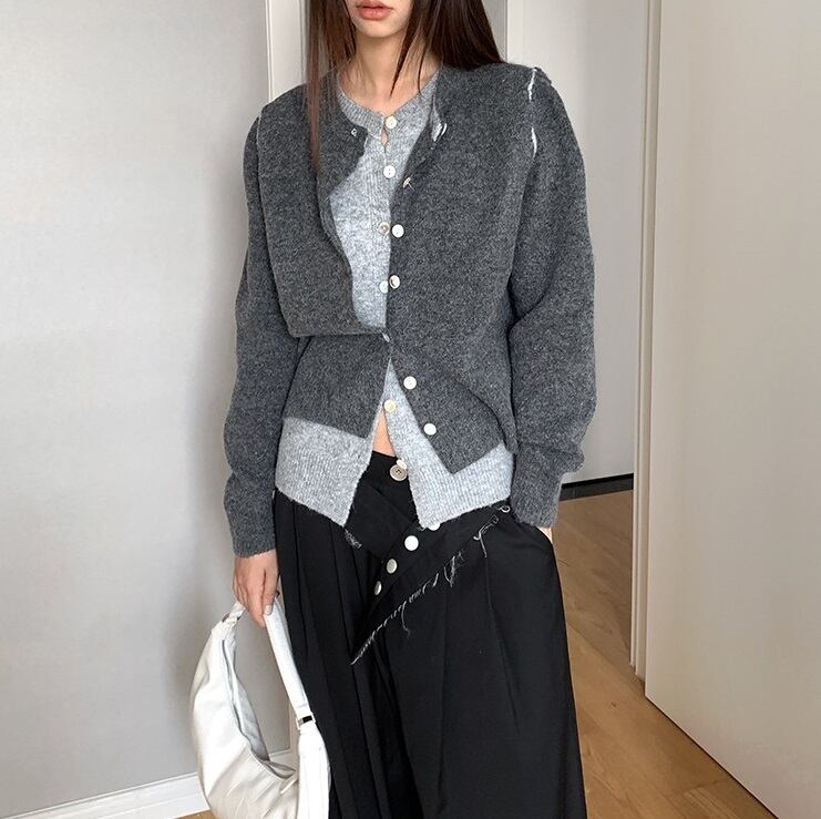 このカーディガンは、春、秋、冬の3シーズンにわたり、通勤、通学、デート、お出かけ、ショッピングなど、多彩なシーンで大活躍します。シンプルなデザインながら、重ね着風のスタイルがこなれ感を漂わせており、カジュアルでおしゃれな雰囲気を演出。前開きのダブルデザインとラウンドネックが、女性らしい可愛さを引き立て、快適な着心地を実現。体型カバーにも優れたアイテムで、普段使いや重ね着にぴったりです!
