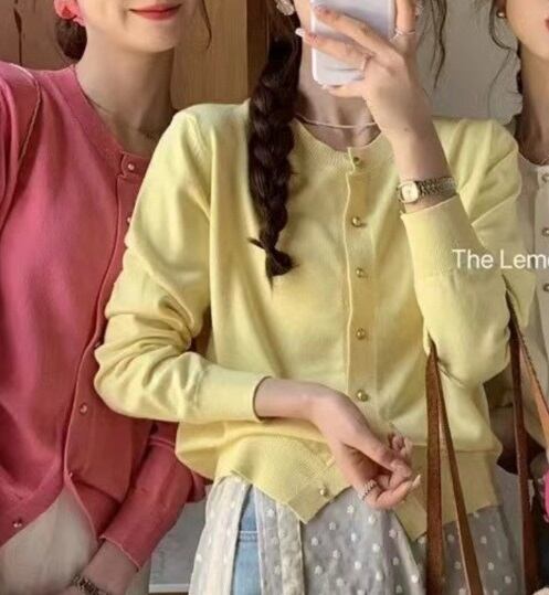 このカーディガンは、シンプルでありながらエレガントなデザインで、春、秋、冬の3シーズンにわたり、通勤、通学、デート、お出かけなど様々なシーンで活躍します!ラウンドネックと可愛らしいゴールドボタンがポイントとなり、きれいめコーデやカジュアルスタイルにもストレスなくマッチ。襟なしのスタイルが女性らしさを引き立て、普段使いや休日のお洒落にもぴったりです!リブ編み仕上げの素材は心地よいフィット感を提供し、着心地も抜群。フリーサイズなので、どなたでも気軽にご着用いただけます。