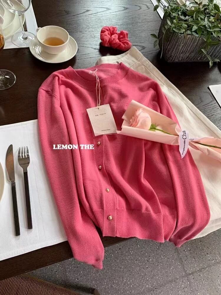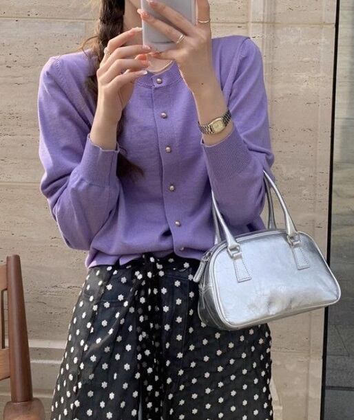 大人可愛い印象を引き立てる「ゴールドボタン ラウンドネック ニットカーディガン」のご案内です!