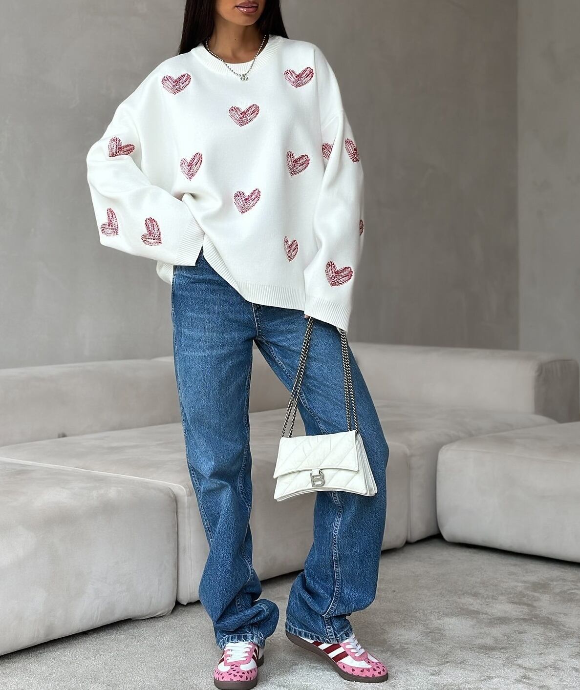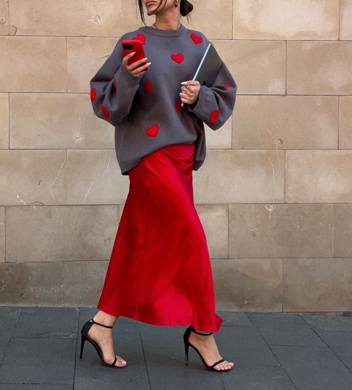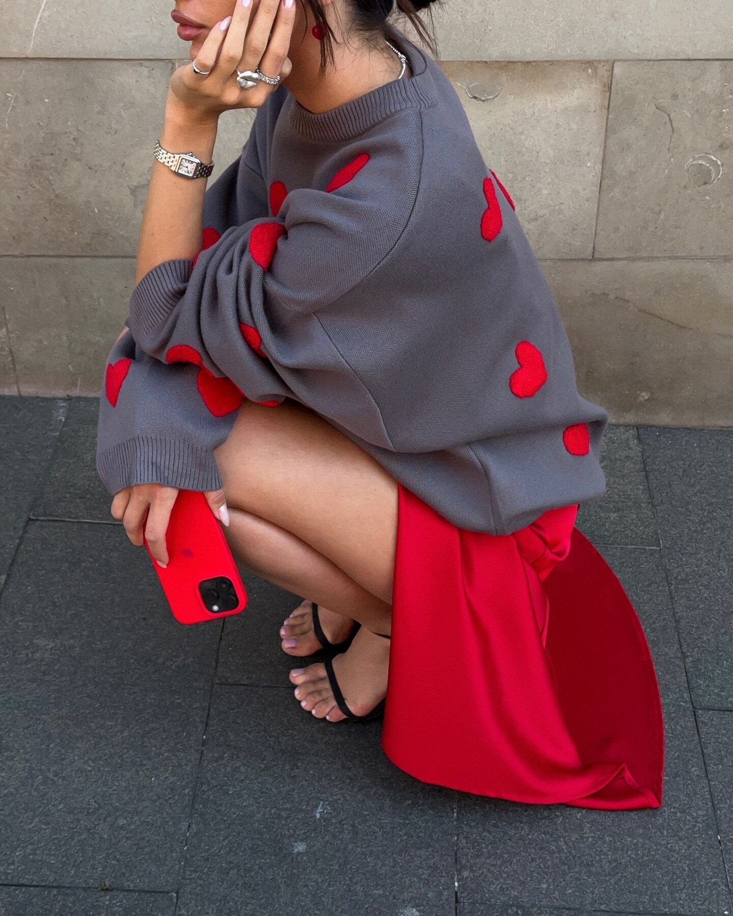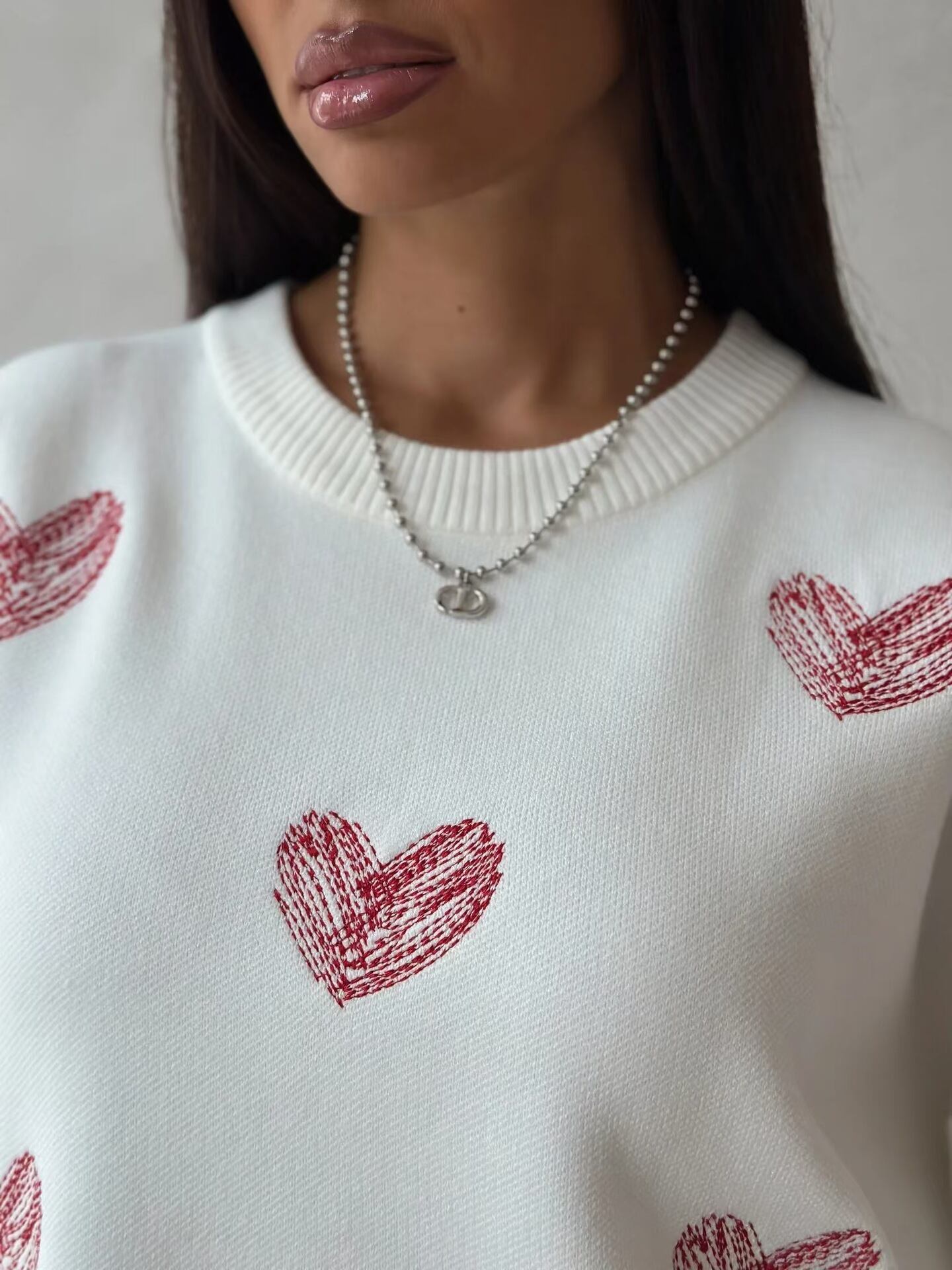 ハート柄 ラウンドネック ニットセーター レディース トップス ニット セーター プルオーバー ミディアム 長袖 ドロップショルダー 襟なし オーバーサイズ バイカラー かわいい 大人可愛い きれいめ シンプル カジュアル おしゃれ こなれ感 ガーリー ルーズ 個性的 主役級 存在感 ラブリー キュート ハート 春 秋 冬 ママ 通勤 学生 学校 通学 デート お出かけ 旅行 公園 女子会 休日 重ね着 暖かい 体型カバー 普段使い 着回し レイヤード ゆったり 白 ホワイト グレー ピンク レッド