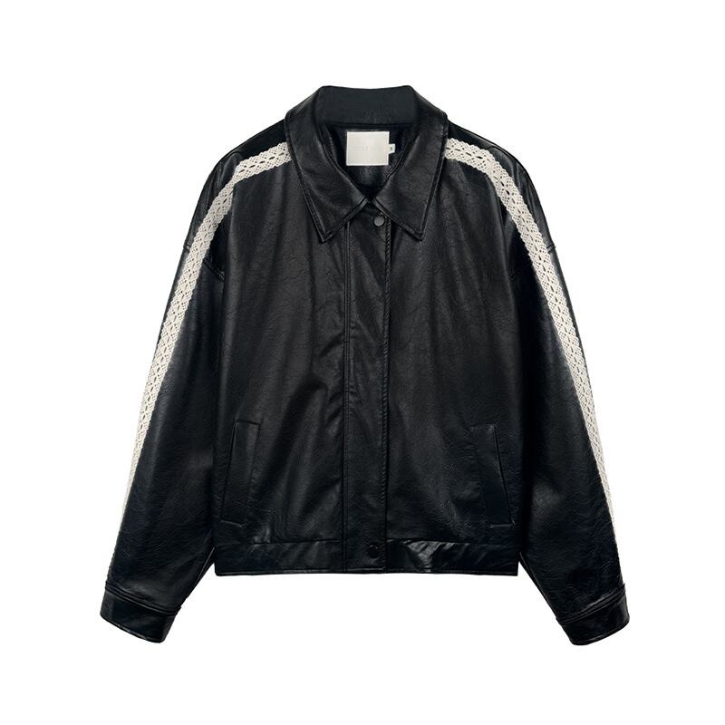 このレザージャケットは、優雅なレース付きのデザインが特徴で、デイリースタイルに個性的なアクセントを加えます。柔らかなPUレザー素材を使用しており、カジュアルながらも上品な印象を与えます。ジャケットの前開きファスナー仕様は、羽織りやすさと着心地を両立!シンプルながらも存在感があるため、通勤や学業のシーン、デート、お出かけ、旅行など、幅広いシーンで大活躍間違いなしです。